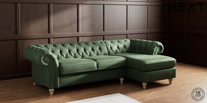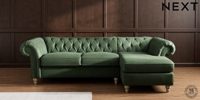 7.2.10 Gosford Highback II Deep Sit Medium Sofa Chaise - Right Hand Luxe Chenille Dark Green Low Turned - Light | Made Click here to use our website with more accessibility support, for example screen readers