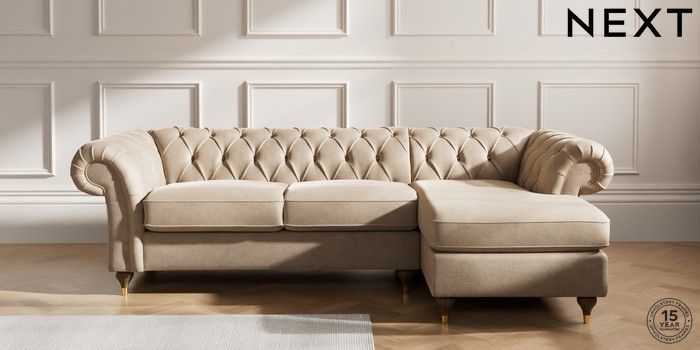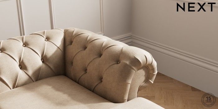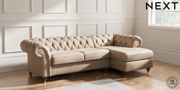 7.2.10 Gosford Highback II Deep Sit Medium Sofa Chaise - Right Hand Luxe Chenille Mid Camel Beige Modern Turned Metal Cap - Mid | Made Click here to use our website with more accessibility support, for example screen readers