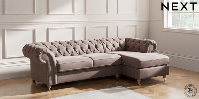 7.2.10 Gosford Highback II Deep Sit Medium Sofa Chaise - Right Hand Luxe Chenille Mink Brown Castor - Light | Made Click here to use our website with more accessibility support, for example screen readers