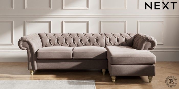 7.2.10 Gosford Highback II Deep Sit Medium Sofa Chaise - Right Hand Luxe Chenille Mink Brown Low Turned - Light | Made Click here to use our website with more accessibility support, for example screen readers