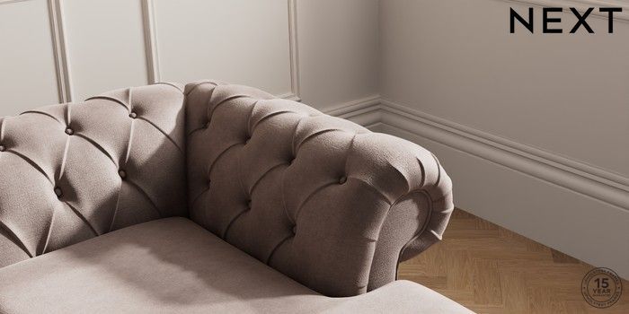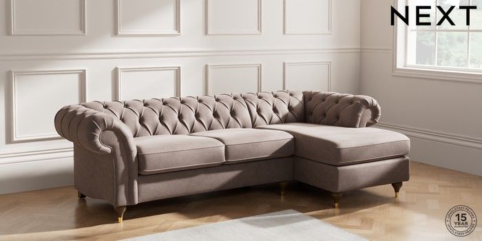 7.2.10 Gosford Highback II Deep Sit Medium Sofa Chaise - Right Hand Luxe Chenille Mink Brown Modern Turned Metal Cap - Mid | Made Click here to use our website with more accessibility support, for example screen readers