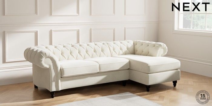 7.2.10 Gosford Highback II Deep Sit Medium Sofa Chaise - Right Hand Luxe Chenille Oyster Low Turned - Dark | Made Click here to use our website with more accessibility support, for example screen readers