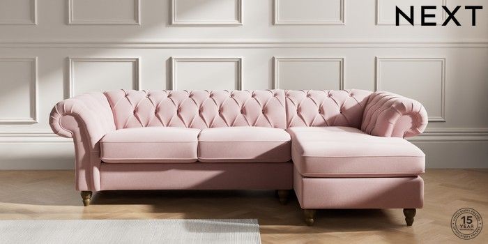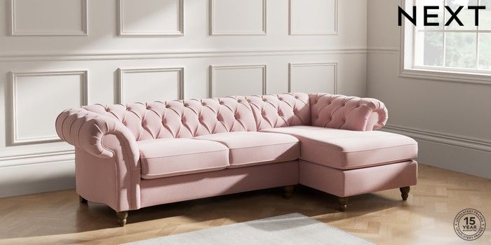 7.2.10 Gosford Highback II Deep Sit Medium Sofa Chaise - Right Hand Natural Mix Light Rose Pink Low Turned - Mid | Made Click here to use our website with more accessibility support, for example screen readers