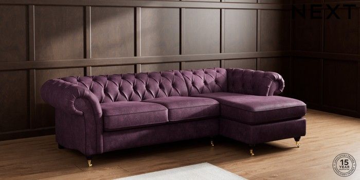 7.2.10 Gosford Highback II Deep Sit Medium Sofa Chaise - Right Hand Plush Chenille Dark Plum Purple Castor - Dark | Made Click here to use our website with more accessibility support, for example screen readers
