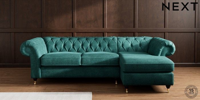 7.2.10 Gosford Highback II Deep Sit Medium Sofa Chaise - Right Hand Plush Chenille Dark Teal Green Castor - Dark | Made Click here to use our website with more accessibility support, for example screen readers
