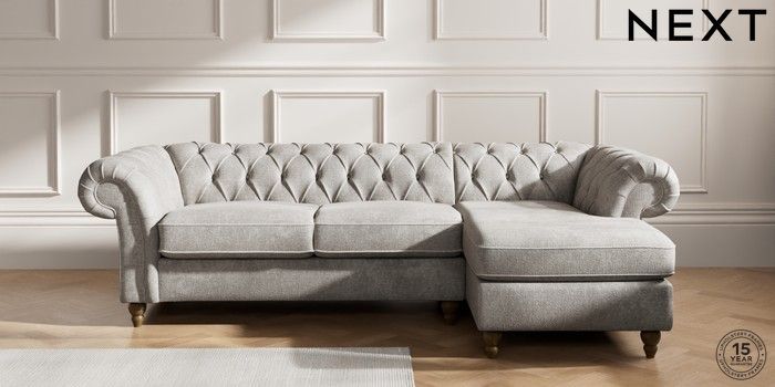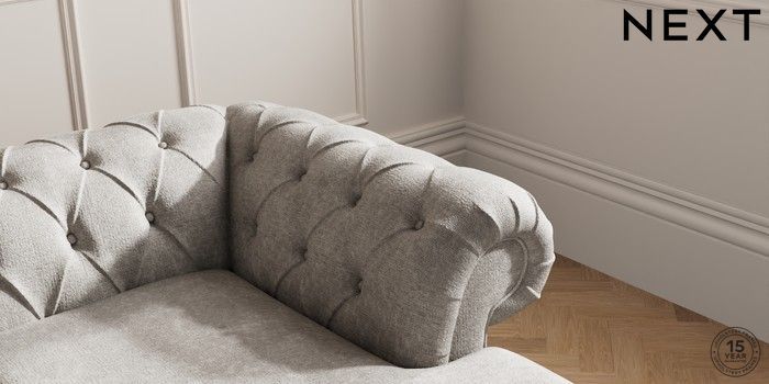 7.2.10 Gosford Highback II Deep Sit Medium Sofa Chaise - Right Hand Plush Chenille Light Grey Low Turned - Mid | Made Click here to use our website with more accessibility support, for example screen readers