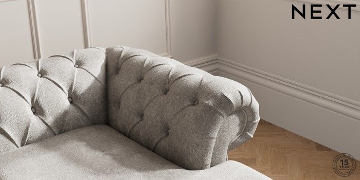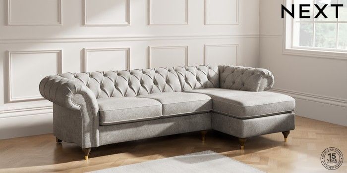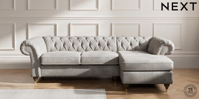 7.2.10 Gosford Highback II Deep Sit Medium Sofa Chaise - Right Hand Plush Chenille Light Grey Modern Turned Metal Cap - Mid | Made Click here to use our website with more accessibility support, for example screen readers