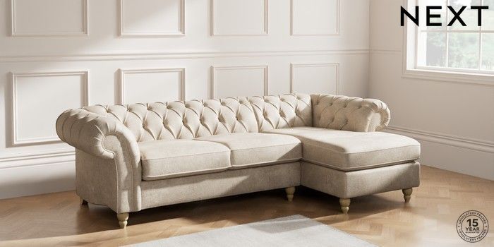 7.2.10 Gosford Highback II Deep Sit Medium Sofa Chaise - Right Hand Plush Chenille Light Natural Low Turned - Light | Made Click here to use our website with more accessibility support, for example screen readers
