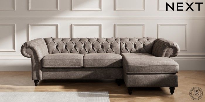 7.2.10 Gosford Highback II Deep Sit Medium Sofa Chaise - Right Hand Plush Chenille Mink Brown Low Turned - Dark | Made Click here to use our website with more accessibility support, for example screen readers