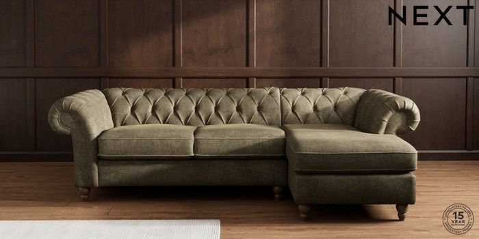 7.2.10 Gosford Highback II Deep Sit Medium Sofa Chaise - Right Hand Plush Chenille Moss Green Low Turned - Mid | Made Click here to use our website with more accessibility support, for example screen readers