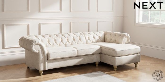 7.2.10 Gosford Highback II Deep Sit Medium Sofa Chaise - Right Hand Plush Chenille Oyster Low Turned - Light | Made Click here to use our website with more accessibility support, for example screen readers