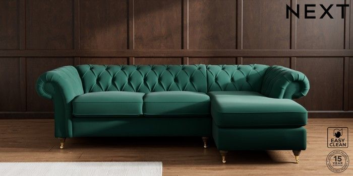 7.2.10 Gosford Highback II Deep Sit Medium Sofa Chaise - Right Hand Plush Velvet Easy Clean Bottle Green Castor - Mid | Made Click here to use our website with more accessibility support, for example screen readers