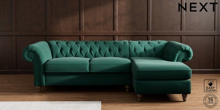 7.2.10 Gosford Highback II Deep Sit Medium Sofa Chaise - Right Hand Plush Velvet Easy Clean Bottle Green Low Turned - Mid | Made Click here to use our website with more accessibility support, for example screen readers