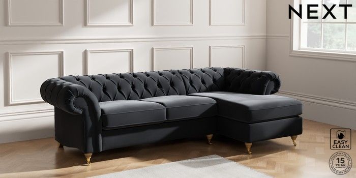 7.2.10 Gosford Highback II Deep Sit Medium Sofa Chaise - Right Hand Plush Velvet Easy Clean Charcoal Grey Castor - Light | Made Click here to use our website with more accessibility support, for example screen readers