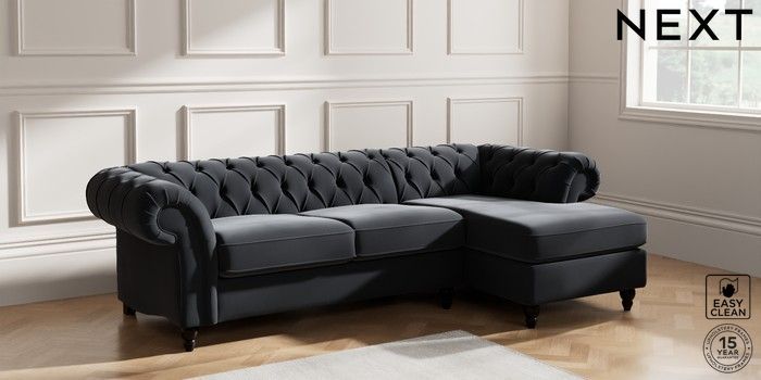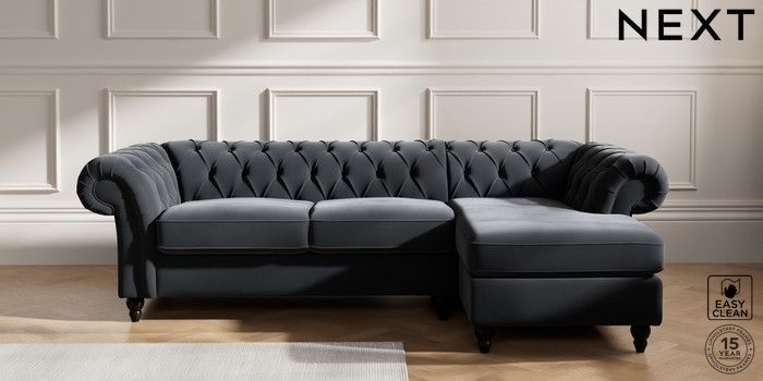 7.2.10 Gosford Highback II Deep Sit Medium Sofa Chaise - Right Hand Plush Velvet Easy Clean Charcoal Grey Low Turned - Dark | Made Click here to use our website with more accessibility support, for example screen readers