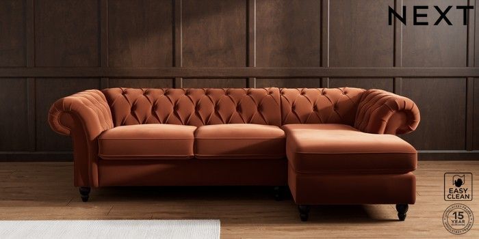 7.2.10 Gosford Highback II Deep Sit Medium Sofa Chaise - Right Hand Plush Velvet Easy Clean Ginger Orange Low Turned - Dark | Made Click here to use our website with more accessibility support, for example screen readers