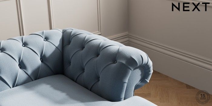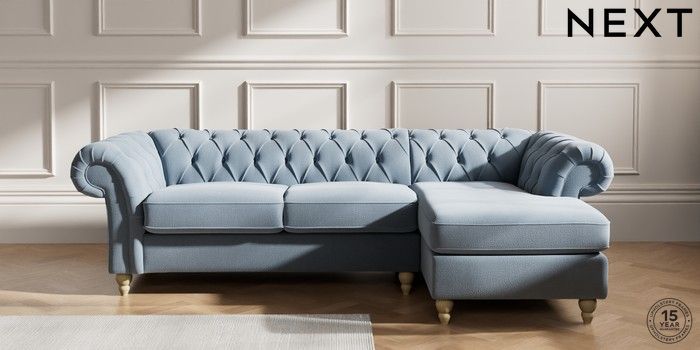7.2.10 Gosford Highback II Deep Sit Medium Sofa Chaise - Right Hand Relaxed Linen Look Mid Blue Low Turned - Light | Made Click here to use our website with more accessibility support, for example screen readers