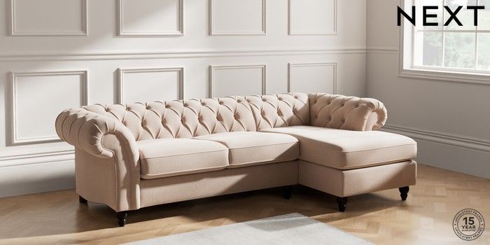 7.2.10 Gosford Highback II Deep Sit Medium Sofa Chaise - Right Hand Relaxed Linen Look Mid Natural Low Turned - Dark | Made Click here to use our website with more accessibility support, for example screen readers