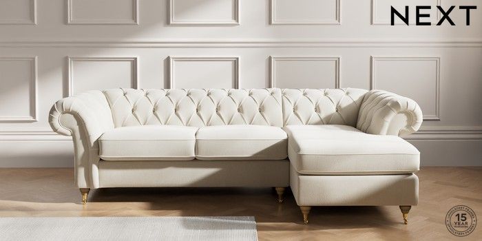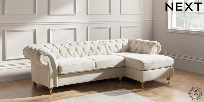 7.2.10 Gosford Highback II Deep Sit Medium Sofa Chaise - Right Hand Relaxed Linen Look Oyster Castor - Light | Made Click here to use our website with more accessibility support, for example screen readers