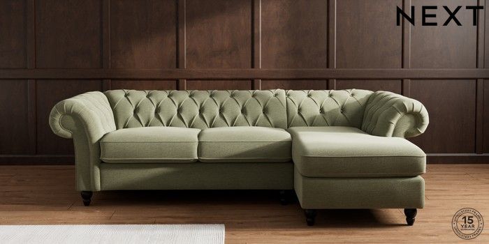 7.2.10 Gosford Highback II Deep Sit Medium Sofa Chaise - Right Hand Ripple Chenille Mid Moss Green Low Turned - Dark | Made Click here to use our website with more accessibility support, for example screen readers
