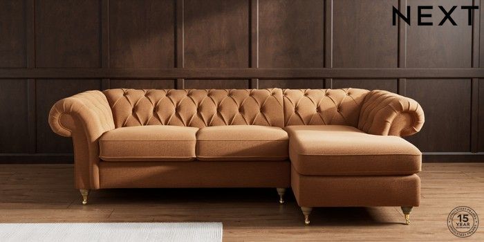 7.2.10 Gosford Highback II Deep Sit Medium Sofa Chaise - Right Hand Ripple Chenille Mid Rust Brown Castor - Light | Made Click here to use our website with more accessibility support, for example screen readers
