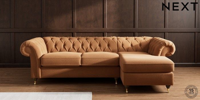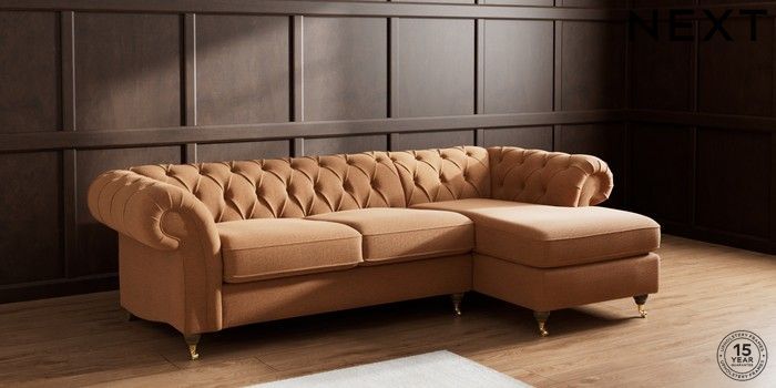7.2.10 Gosford Highback II Deep Sit Medium Sofa Chaise - Right Hand Ripple Chenille Mid Rust Brown Castor - Mid | Made Click here to use our website with more accessibility support, for example screen readers