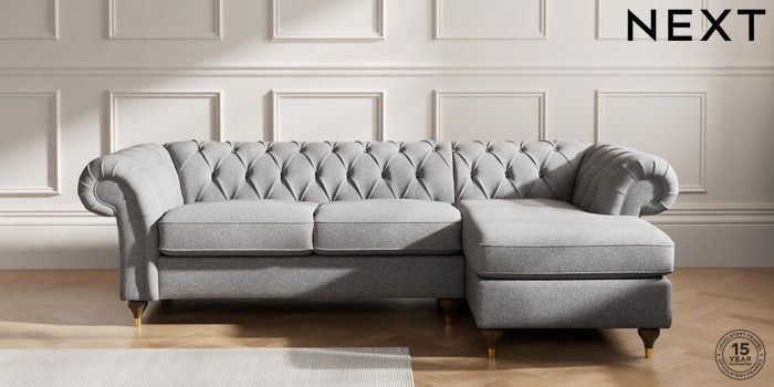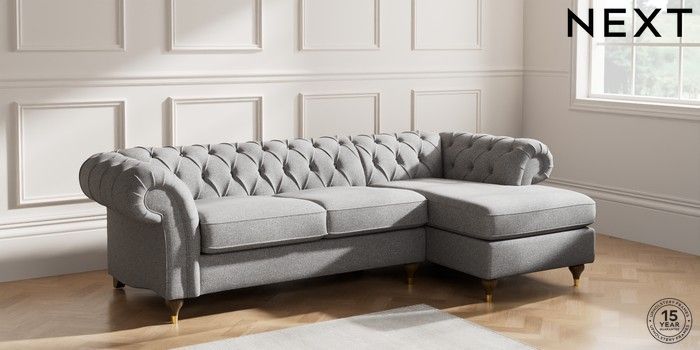 7.2.10 Gosford Highback II Deep Sit Medium Sofa Chaise - Right Hand Studio Chenille Mid Grey Modern Turned Metal Cap - Mid | Made Click here to use our website with more accessibility support, for example screen readers