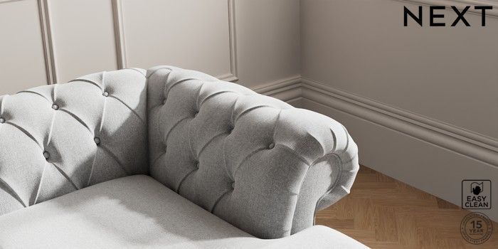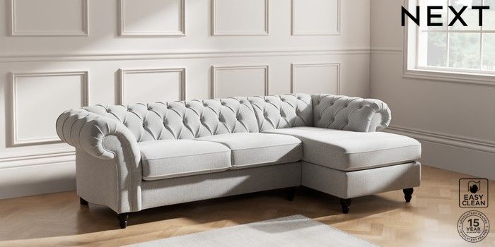 7.2.10 Gosford Highback II Deep Sit Medium Sofa Chaise - Right Hand Tweedy Blend Easy Clean Light Silver Grey Low Turned - Dark | Made Click here to use our website with more accessibility support, for example screen readers