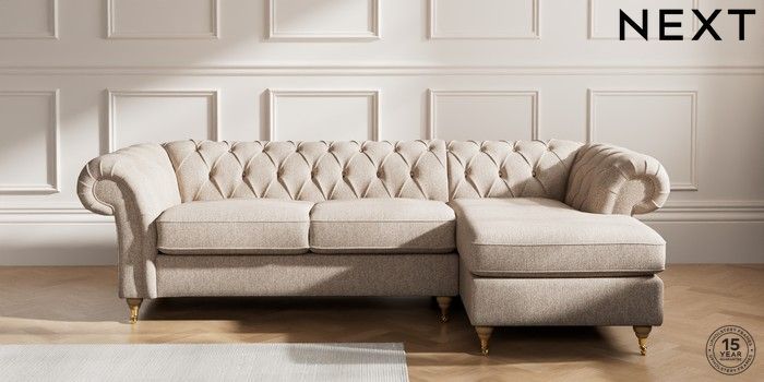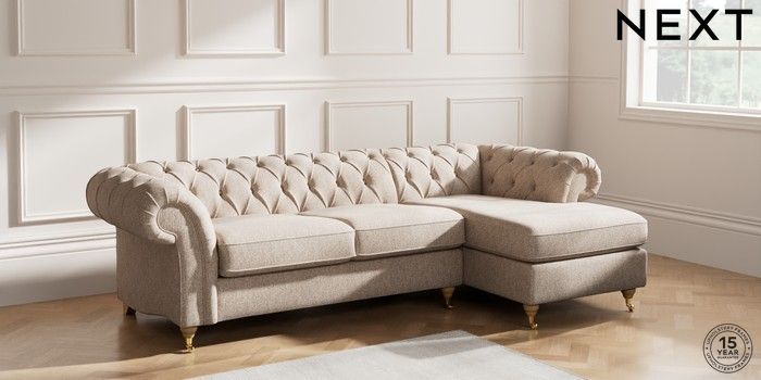 7.2.10 Gosford Highback II Deep Sit Medium Sofa Chaise - Right Hand Tweedy Chenille Mid Natural Castor - Light | Made Click here to use our website with more accessibility support, for example screen readers