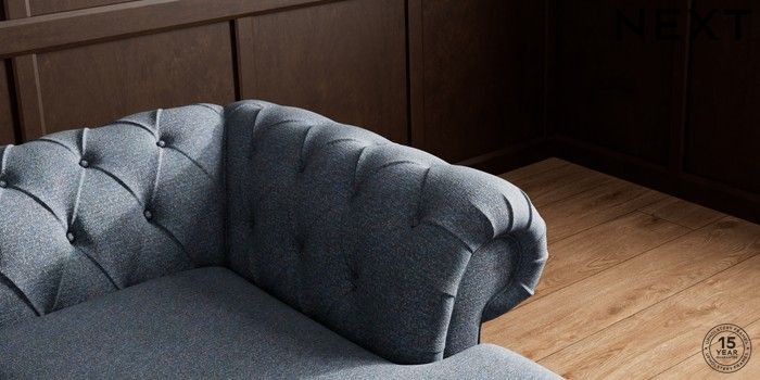 7.2.10 Gosford Highback II Deep Sit Medium Sofa Chaise - Right Hand Tweedy Chenille Navy Blue Low Turned - Dark | Made Click here to use our website with more accessibility support, for example screen readers