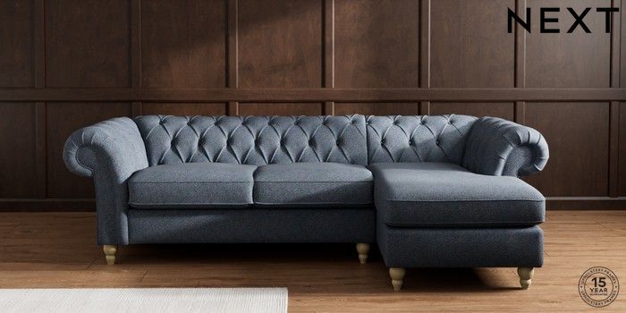7.2.10 Gosford Highback II Deep Sit Medium Sofa Chaise - Right Hand Tweedy Chenille Navy Blue Low Turned - Light | Made Click here to use our website with more accessibility support, for example screen readers