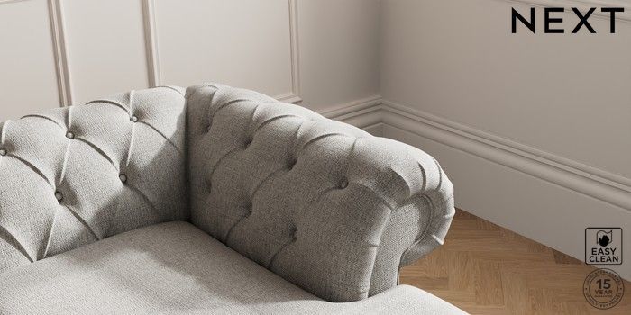 7.2.10 Gosford Highback II Deep Sit Medium Sofa Chaise - Right Hand Woven Chenille Easy Clean Light Grey Low Turned - Dark | Made Click here to use our website with more accessibility support, for example screen readers