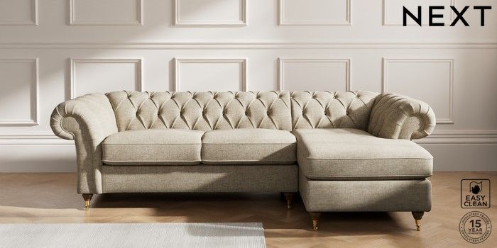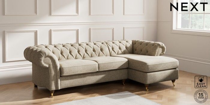 7.2.10 Gosford Highback II Deep Sit Medium Sofa Chaise - Right Hand Woven Chenille Easy Clean Mid Natural Castor - Mid | Made Click here to use our website with more accessibility support, for example screen readers
