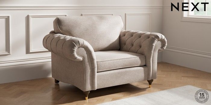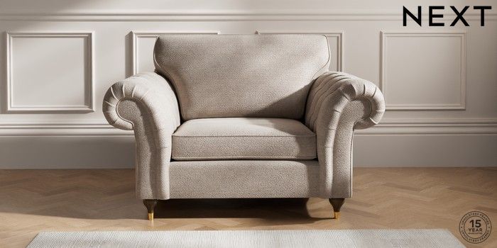 7.2.10 Gosford Highback II Deep Sit Snuggle Boucle Chenille Light Natural Modern Turned Metal Cap - Mid | Made Click here to use our website with more accessibility support, for example screen readers