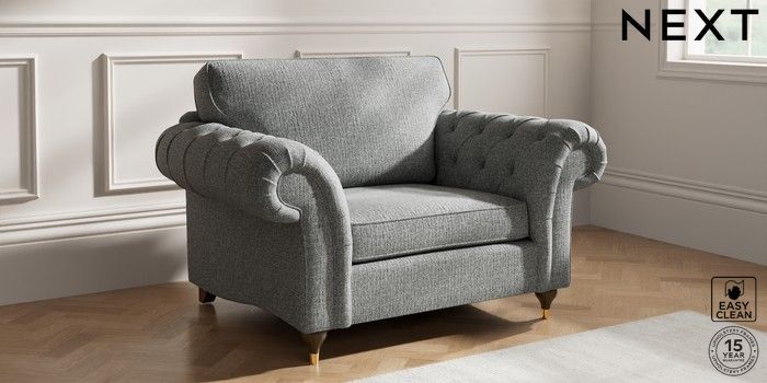 7.2.10 Gosford Highback II Deep Sit Snuggle Chunky Boucle Easy Clean Mid Grey Modern Turned Metal Cap - Mid | Made Click here to use our website with more accessibility support, for example screen readers