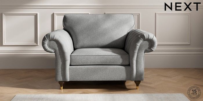 7.2.10 Gosford Highback II Deep Sit Snuggle Chunky Weave Mid Grey Modern Turned Metal Cap - Mid | Made Click here to use our website with more accessibility support, for example screen readers