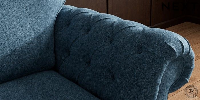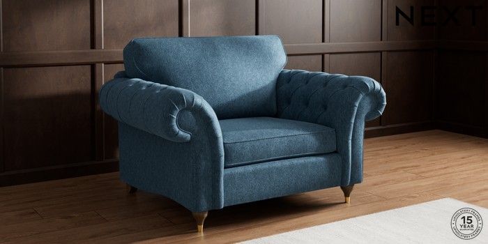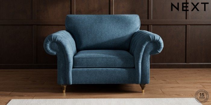 7.2.10 Gosford Highback II Deep Sit Snuggle Cotswold Chenille Dark Blue Modern Turned Metal Cap - Mid | Made Click here to use our website with more accessibility support, for example screen readers