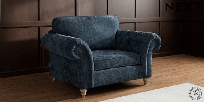 7.2.10 Gosford Highback II Deep Sit Snuggle Distressed Velour Midnight Blue Low Turned - Light | Made Click here to use our website with more accessibility support, for example screen readers