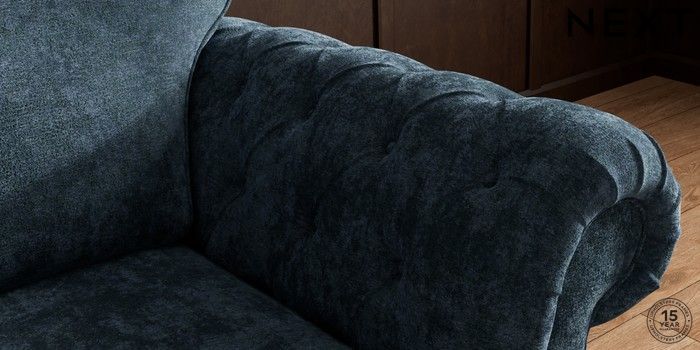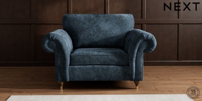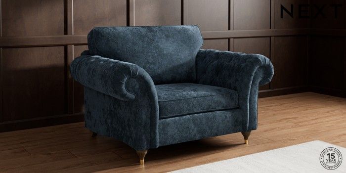 7.2.10 Gosford Highback II Deep Sit Snuggle Distressed Velour Midnight Blue Modern Turned Metal Cap - Mid | Made Click here to use our website with more accessibility support, for example screen readers