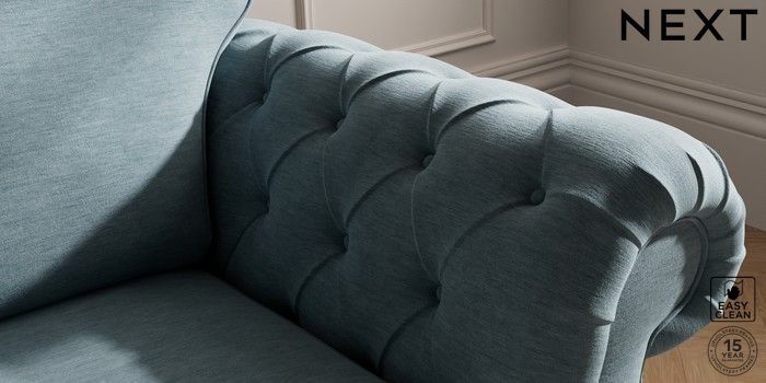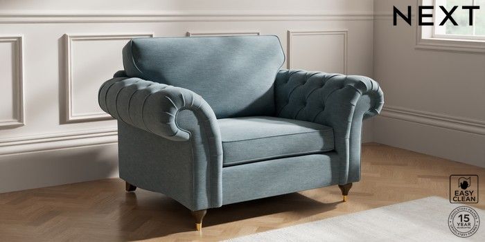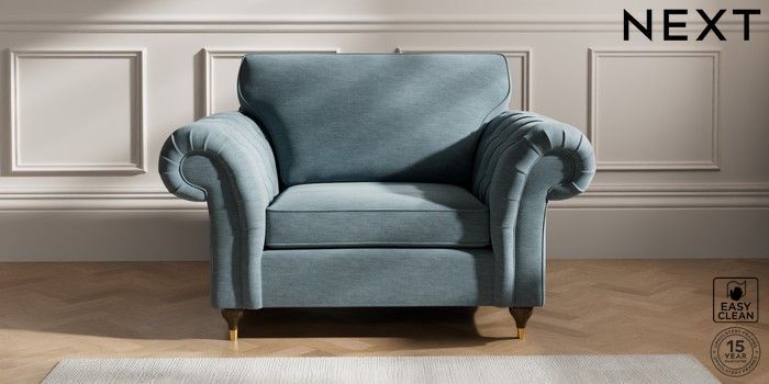 7.2.10 Gosford Highback II Deep Sit Snuggle Fine Chenille Easy Clean Mid Blue Modern Turned Metal Cap - Mid | Made Click here to use our website with more accessibility support, for example screen readers