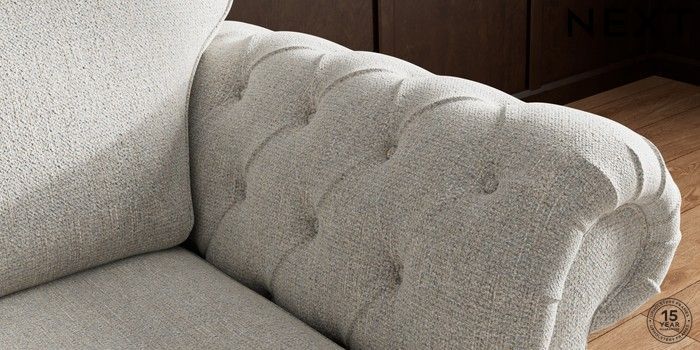 The Gosford High Back sofa brings all the charm and elegance of the classic Gosford, with added comfort thanks to its higher back cushions. The gorgeous deep buttoning on the arms really makes a style statement. This sofa features our special "Firmer Sit" seat cushions, which use a high-density foam core surrounded by soft toppers. This smart design provides ultimate support, lasting durability, and ensures the cushions always spring back to their tailored look. They're also wonderfully low-maintenance. For an extra touch of luxury, we've included plush scatter cushions filled with a rich fibre mix. The seat cushions are reversible too, so a quick flip and plump will keep them looking their best. Make the Gosford High Back uniquely yours by choosing from a huge range of fabrics and a choice of feet.