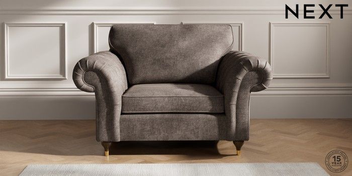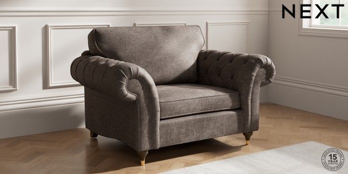 7.2.10 Gosford Highback II Deep Sit Snuggle Plush Chenille Mink Brown Modern Turned Metal Cap - Mid | Made Click here to use our website with more accessibility support, for example screen readers
