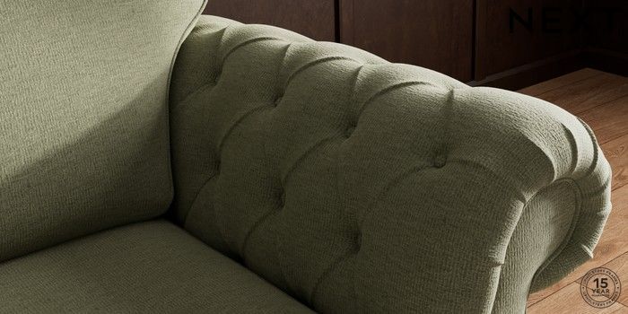 7.2.10 Gosford Highback II Deep Sit Snuggle Ripple Chenille Mid Moss Green Modern Turned Metal Cap - Mid | Made Click here to use our website with more accessibility support, for example screen readers