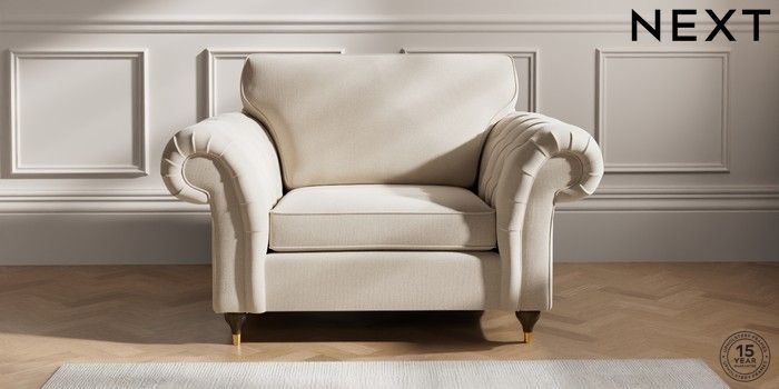 7.2.10 Gosford Highback II Deep Sit Snuggle Studio Chenille Oyster Modern Turned Metal Cap - Mid | Made Click here to use our website with more accessibility support, for example screen readers