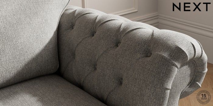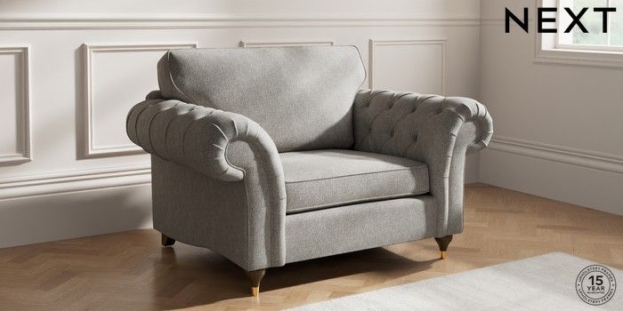 7.2.10 Gosford Highback II Deep Sit Snuggle Tweedy Chenille Mid Grey Modern Turned Metal Cap - Mid | Made Click here to use our website with more accessibility support, for example screen readers