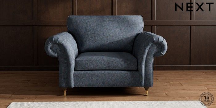 7.2.10 Gosford Highback II Deep Sit Snuggle Tweedy Chenille Navy Blue Castor - Mid | Made Click here to use our website with more accessibility support, for example screen readers