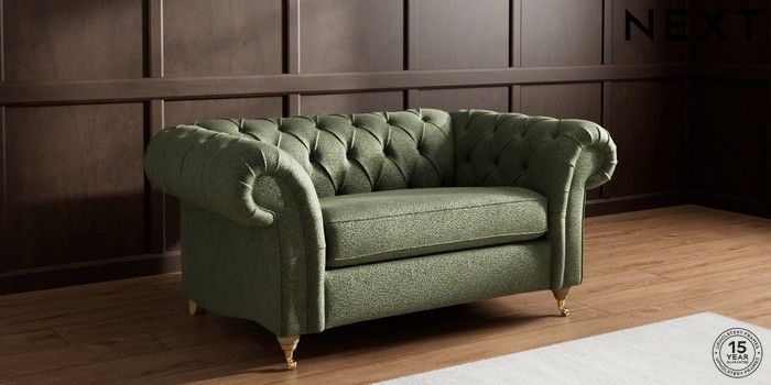 7.2.10 Gosford II Deep Sit 2 Seater Small Sofa Boucle Chenille Dark Moss Green Castor - Light | Made Click here to use our website with more accessibility support, for example screen readers
