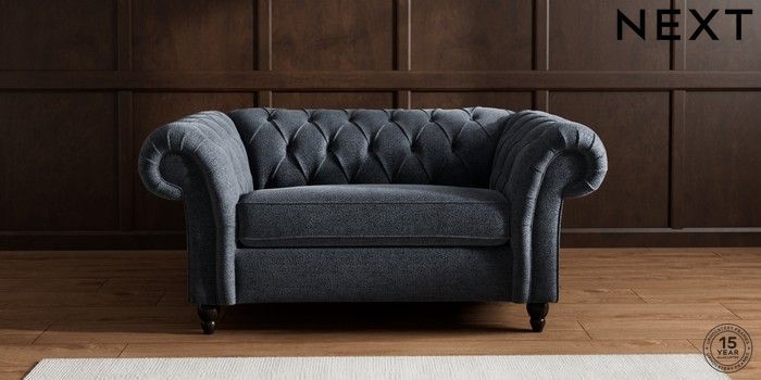 7.2.10 Gosford II Deep Sit 2 Seater Small Sofa Boucle Chenille Dark Slate Blue Low Turned - Dark | Made Click here to use our website with more accessibility support, for example screen readers