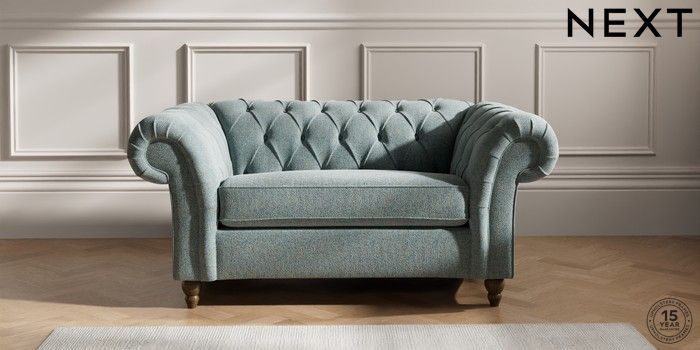 7.2.10 Gosford II Deep Sit 2 Seater Small Sofa Chunky Marl Mid Blue Low Turned - Mid | Made Click here to use our website with more accessibility support, for example screen readers