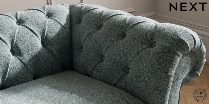 7.2.10 Gosford II Deep Sit 2 Seater Small Sofa Chunky Marl Mid Blue Modern Turned Metal Cap - Mid | Made Click here to use our website with more accessibility support, for example screen readers